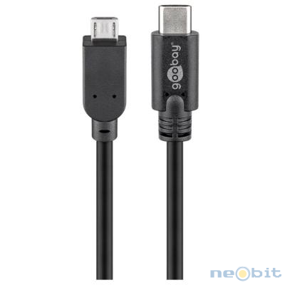 | GOOBAY microUSB (Type B) na USB-C 1m črn prenos podatkov polnilni kabel |