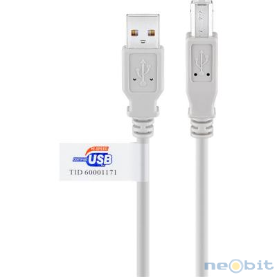GOOBAY USB 2.0 (type A) / USB 2.0 (type B) kabel sive barve. Dolžine 5 m z maksimalno hitrostjo prenosa podatkov 0,48 Gbit/s.