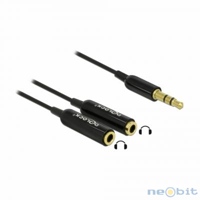 Delock avdio razdelilec iz enega 3.5mm stereo jack priključka na dva 3.5mm stereo jack priključka, kar omogoči enostavno poslušanje istega vira zvoka na dvojih slušalkah.
