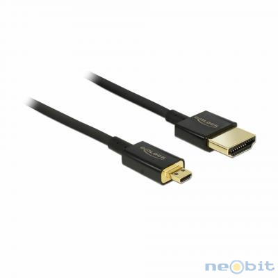 Delock visokokakovostni kabel High Speed HDMI omogoča priključitev naprav z mikro HDMI vmesnikom na naprave z HDMI vmesnikom. Kabel z Ethernet povezavo, izstopa zaradi svoje slim izvedbe in kratkih priključkov. Trojno oklopljen kabel združuje hiter prenos podatkov, kot tudi avdio / video in Ethernet povezave. Podpira največjo pasovno širino 18 Gb/s, vsebino 4K (največja hitrost 60Hz), 3D vsebino v 4K ločljivosti (največja hitrost 24 Hz) in vsebino v 21:9 razmerju (kino). Kabel omogoča hkratno pošiljanje dveh video kanalov za ogled video tokov za dva uporabnika na enem zaslonu, kot tudi hkraten prenos do štirih zvočnih kanalov. Kakovost zvoka je bistveno izboljšana s hitrostjo vzorčenja do 1536 kHz.