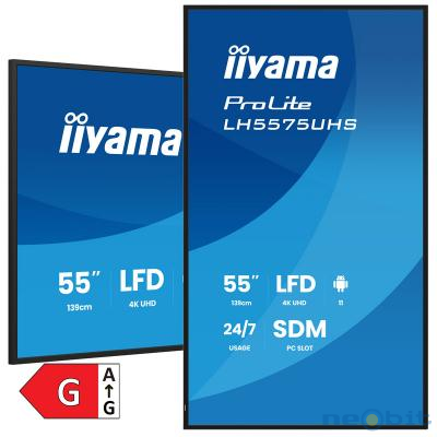 IIYAMA ProLite LH5575UHS-B2AG 54,6" (139cm) 4K UHD IPS HDMI/DP 24/7 zvočniki informacijski zaslon 55" 4K UHD Profesionalni Digitalni Informacijski Zaslon za 24/7 delovanje z Android OS, FailOver funkcijo in Intel SDM režo Izberite neprekinjeno visoko zmogljivost in zanesljivost z idealno vse-v-enem rešitvijo za digitalno označevanje v kritičnih okoljih. LH5575UHS podjetja iiyama omogoča delovanje v ležeči ali pokončni orientaciji v neprekinjenem 24/7 okolju brez prekinitev. Njegova vsestranskost se lahko prilagodi potrebam vaše industrije. Vgrajeni Android 11 OS pomeni, da lahko zaslon enostavno prilagodite svojim potrebam in nanj neposredno nameščate aplikacije. Vgrajeni iiSignage (sistem za upravljanje vsebin) vam omogoča popoln nadzor nad vašim sporočanjem in oglaševanjem - oddaljeno in varno. SDM reža omogoča vgradnjo PC modula za popolno prilagodljivost, varnost in nadzor, medtem ko funkcija FailOver zagotavlja, da je vaša vsebina vedno aktivno prikazana prek izbranih vhodov. Vgrajeni (in odstranljivi) WiFi modul pomeni, da je ta serija pripravljena za oddaljen prikaz vsebin prek vašega omrežja. Zaslon zdaj ponuja tudi DP-Out iz kateregakoli vhoda. Z iiControl (DMS), iiShare in integrirano aplikacijo EShare (brezžično deljenje zaslona) omogočate enostavno idejno snovanje in učinkovito sodelovanje v vašem podjetju ali šoli. Brezžično deljenje še nikoli ni bilo tako preprosto. Android OS Zahvaljujoč Android OS lahko zaslon enostavno prilagodite svojim potrebam z neposredno namestitvijo aplikacij. iiSignage2 iiSignage2 je platforma za upravljanje digitalnih vsebin, ki omogoča enostavno prikazovanje in nadzor ter varno upravljanje zaslonov. Sistem za upravljanje vsebin (CMS) vam omogoča popoln nadzor nad vašim sporočanjem in oglaš evanjem ? oddaljeno in varno. Signal FailOver FailOver je funkcija, ki samodejno zazna vhodne vire. Ko na privzetem vhodu ni signala, se samodejno preklopi na naslednji razpoložljiv vhod. FailOver omogoča uporabnikom, da določijo prioriteto vhodov (vključno z brskalnikom, predvajalnikom medijev in prilagojenimi viri) ter zagotavlja, da je vsebina vedno aktivna. Smart Display Module Smart Display Module (majhen/velik) je vstavni modul, ki se enostavno vstavi v najmodernejše in ultra-tanke zaslone. Ta majhen modul zagotavlja odlično zmogljivost z minimalnim naporom pri implementaciji in upravljanju. Na voljo kot dodatna oprema.