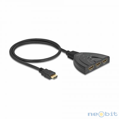Delock HDMI stikalo 3x1 8K 60Hz 18649 omogoča povezavo do treh HDMI naprav na en zaslon, TV ali projektor. Z gumbom na ohišju lahko enostavno preklapljate med priključenimi napravami. Podpira ločljivost do 8K @ 60 Hz za vrhunsko kakovost slike in je idealna rešitev za domači kino ali delovno okolje. Tehnične lastnosti: - priključki: - vhod: 3 x hdmi-a ženski - izhod: 1 x hdmi-a moški - preklapljanje: z gumbom - led indikatorji: za aktivni hdmi port - standard: ultra high speed hdmi - podpora za hdcp: 1.4 in 2.3 - podpora za hdr: da - podpora za game mode vrr: da - podpora za zvok: dolby® truehd in dts-hd master audio™ - ločljivost: - do 7680 x 4320 @ 60 hz - do 3840 x 2160 @ 144 hz (odvisno od sistema in priključene strojne opreme) - video pasovna širina: do 1200 mhz / 12 gbps, največ 48 gbps - napajanje: ni potrebno zunanje napajanje - ohišje: plastično - barva: črna - dimenzije (d x š x v): cca. 81 x 62 x 16 mm - dolžina kabla brez konektorjev: cca. 60 cm