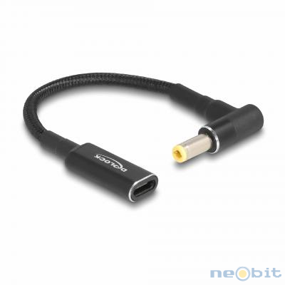 Delock napajalni kabel USB Tip-C v 5,5 × 2,5 mm, dolžine 0,15 m, črne barve, namenjen napajanju prenosnikov. Podpira 20 V / 3 A preko USB-C Power Delivery. Omogoča uporabo običajnega USB-C polnilca brez potrebe po velikem napajalniku za prenosnike, kar je priročno pri delu ali potovanjih.