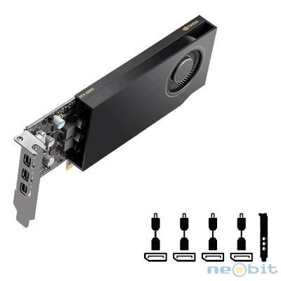PNY NVIDIA A400 4B GDDR6 (VCNRTXA400-PB) profesionalna grafična kartica Priloženi 4x Mini DisplayPort na DisplayPort adapterji. Zmogljivost za neskončne možnosti. NVIDIA RTX™ A400, zgrajen na arhitekturi GPE NVIDIA Ampere, prinaša moč umetne inteligence in ray tracing pospeševanje v roke več profesionalcev. RTX A400 zagotavlja delovne procese, ki jih poganja umetna inteligenca, in osupljive ray tracing slike so dostavljene z zmogljivostjo brez primere v formatu, ki prihrani prostor v ohišju. Poleg tega lahko povežete do štiri zaslone, da razširite svoja vizualna obzorja. S svojo kompaktno obliko se RTX A400 zlahka prilega kateri koli delovni postaji in zagotavlja potrebno zmogljivost za današnje profesionalne poteke dela brez kompromisov pri učinkovitosti ali delovnem prostoru. CUDA jedra: 768 Tensor jedra: 24 RT jedra: 6 Single Precision zmogljivost: 2.7 TFLOPS RT Core zmogljivost: 5.3 TFLOPS Tensor zmogljivost: 21.7 TFLOPS Število zaslonov: 4x 5k 60Hz