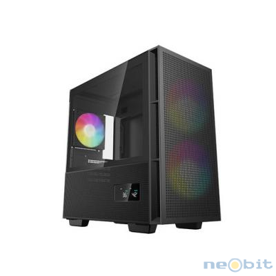 | Računalniško ohišje DeepCool CH360 Digital, Micro-ATX, ARGB, LCD, kaljeno steklo, črno |