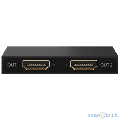GOOBAY HDMI 2 na 1 4K pretvornik stikalo  Razdelilnik HDMI podvoji 1 vhodni signal HDMI na do 2 izhoda HDMI, kot sta televizor, monitor ali projektor. Večkratni priključek HDMI zrcali zvočne in video signale na priključene naprave, npr. za sočasno projiciranje v različnih prostorih. Razdelilnik HDMI 1x2 podpira ločljivosti do 4K pri 30 Hz (združljiv s prejšnjimi različicami). LED-zaslon podaljševalnika HDMI prikazuje, katere povezave so aktivirane. HDMI adapter 1 v 2 izhoda v ploščati izvedbi, opremljen z aluminijastim ohišjem, ki odvaja toploto, in pozlačenimi priključki Plug & Play omogoča enostavno povezavo brez potrebe po namestitvi dodatnih gonilnikov. Napajanje prek 5 V napajalnika in kabla Micro-USB (oba sta vključena v dobavo).  Vhod: HDMI ženski priključek (tip A)  Izhod: 2x HDMI ženski (tip A)    Smer signala: nosmerni  Največja ločljivost: 4K/30Hz (3840x2160) UHD  Podprti video standardi: 4K/30Hz (3840x2160) UHD, 1080p (60Hz) polna HD, polna HD 1080i (60Hz), 3D