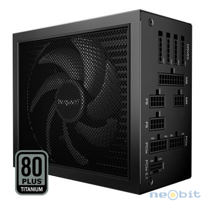 EAN koda 4260052192023 Proizvajalec BE QUIET! Vrsta: vgradni Moč: 1000 W Certifikat učinkovitosti: 80 Plus Titanium Učinkovitost: 94,6% na 20%, 95,5% na 50%, 93,8% na 100% Format: ATX Konektorji: 1x ATX-Motherboard (20+4-pin) 1x P4+4 (CPU) 1x P8 (CPU) 1x 12V-2x6 4x PCI-e 6+2-pin (GPU) 13x SATA 2x PATA Napetosti/tokovi +3.3V 25A, +5V 24A, +12V1 in +12V1 33A, +12V3 in +12V4 40A Hlajenje: 135 mm ventilator, Silent Wings, največ do 2100rpm, 8 dB na 50%, največ do 18,2 dB Dodatne lastnosti: modularni Dimenzije: (SxVxG) 175 x 150 x 86 mm