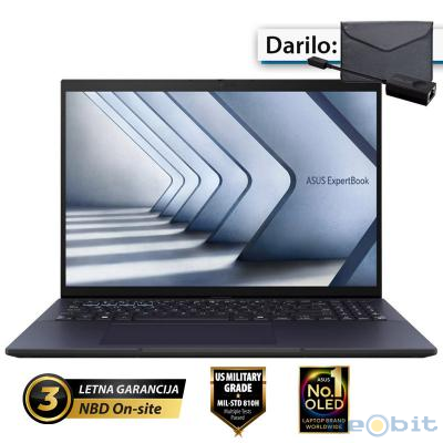 ASUS ExpertBook B9 OLED 14" (35,56cm) WQXGA Core 5 120U 16GB 1TB 0,99kg Win11 Pro prenosni računalnik + ovitek in LAN adapter (B9403CVAR-WB53D0X) Utelešenje trajnostne odličnosti ASUS ExpertBook B9 OLED, zasnovan iz vrhunske magnezijeve in litijeve zlitine, premika meje lahkotnosti za vrhunsko prenosljivost in vzdržljivost. ExpertBook B9 OLED ima okolju prijazno zasnovo, odličen OLED zaslon razmerja 16:10, kamero, ki jo poganja umetna inteligenca, in odpravljanjem šumov za sodobno delovno izkušnjo. Ima najnovejši procesorjem Intel® Core™ vPro® in mnogo varnostnih funkcij poslovnega razreda. Popoln partner za vodstvo in poslovne potnike s čimer postavlja novo merilo za elitne poslovne prenosnike. Najlažji 14-palčni OLED poslovni prenosnik na svetu ExpertBook B9 OLED je strokovno izdelan z natančno pozornostjo do detajlov. Ponaša se z vrhunsko zgradbo iz magnezija in litija, zaradi katere je najlažji 14-palčni poslovni prenosnik OLED na svetu. Njegova elegantna in prefinjena oblika izžareva razkošje, medtem ko izjemno tanki okvirji omogočajo, da se 14-palčni zaslon prilega kompaktnemu ohišju 13-palčnega razreda - zagotavlja tako funkcionalnost kot stil. Z dodatno strukturno ojačitvijo ta prenosnik izpolnjuje vodilni ameriški vojaški standard MIL-STD 810H za zagotavljanje neomajne vzdržljivosti. Podvržen je tudi obsežnemu internemu testiranju s strani ASUS-a, vključno s preskusi pritiska na ploščo, udarcev in padcev. Z lahkoto ga pospravite v svojo aktovko ali torbo in bodite pripravljeni ter dvigniti svojo produktivnost na nove višave, ne glede na to, ali ste v pisarni ali na poti. Vzdrževanje neverjetne prihodnosti ExpertBook B9 OLED vključuje tako trajnostno zasnovo kot ekološko ozaveščene proizvodne tehnike, da bi dosegli krožno gospodarstvo prihodnosti in zmanjšali količino odpadkov. Prejel je več mednarodno priznanih okoljskih certifikatov, hkrati pa uporablja patentiran postopek Thixomolding, ki zmanjša proizvodne materiale za do 29 % in čas izdelave za do 75 %. To zagotavlja, da potrošniki prejmejo izdelke najboljše kakovosti, hkrati pa zmanjšajo vpliv na okolje. Sodobne delovne izkušnje ExpertBook B9 OLED ima osupljiv zaslon OLED 16:10, ki zagotavlja žive in ostre slike. Opremljen je z dvojnimi ventilatorji za pametno hlajenje, ki med intenzivnimi delovnimi obremenitvami poskrbijo za hladno in tiho delovanje prenosnika. ExpertBook B9 OLED skupaj s kamero, ki jo poganja umetna inteligenca, in tehnologijo za odpravljanje šumov za virtualne sestanke vrhunske kakovosti izboljšuje sodobne delovne izkušnje.