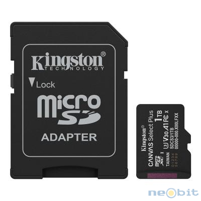 | KINGSTON Canvas Select Plus microSD 1TB Class10 UHS-I SD adapter SDCS3/1TB spominska kartica |