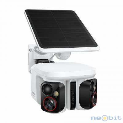 – Dual kamera z ločljivostjo 5MP + 5MP – Omogoča individualno premikanje posamezne kamere ali statični pogled 180° – Samodejno AI sledenje gibanju oseb in objektov – Solarno napajanje, ki se ponaša s funkcijo samodejnega sledenja sončni svetlobi – Barvni nočni vid, reflektor in 8x digitalni zoom
