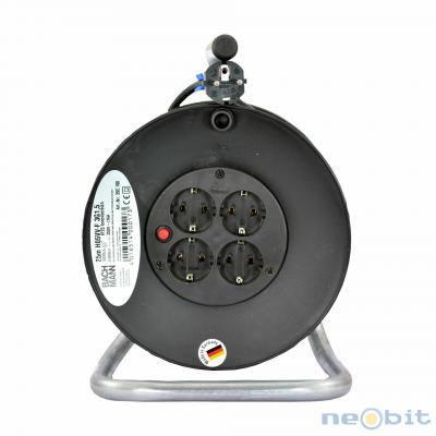 Tehnične lastnosti: 4x Schuko vtičnica Vgrajena termalna varovalka za zaščito pred pregrevanjem Ročaj za prenašanje in navijanje kabla nazaj na boben Kabel: H05VV-F 3G 1.50mm2 Dolžina: 25m Nazivna napetost: 250V Nazivni tok: 16A Največja dovoljena moč: 4000W Izdelek ni primeren za zunanjo uporabo!
