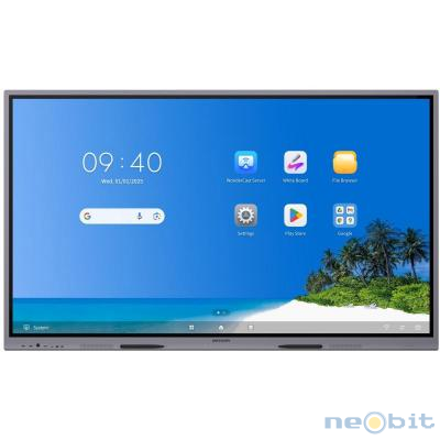 HIKVISION DS-D5B75RB/EP 190,5cm (75") UHD na dotik interaktivni zaslon 75-palčni 4K interaktivni zaslon UHD 4K zaslon z ločljivostjo 3840 x 2160. Protiodsevna (anti-glare) in anti-blocking zasnova za nemoteno interakcijo. Dvojni sistem Android in Windows (Windows prek opcijskega OPS-modula), kar znižuje stroške in omogoča enostavno uporabo. Programska oprema za videokonference je priporočena za uporabo v okolju Windows. Hiter odziv in do 50-točkovni dotik za gladko pisanje in interaktivno delo. Vgrajen omrežni switch čip, ki lahko nadomesti ločeno stikalo. Več gumbov na sprednji strani, kar je priročno za uporabo v učilnicah. Vse-v-enem zasnova s kaljenim steklom in inteligentnim nadzorom temperature, kar zagotavlja varnost in okolju prijazno delovanje. Vgrajen Android 14, naprava je EDLA certificirana.